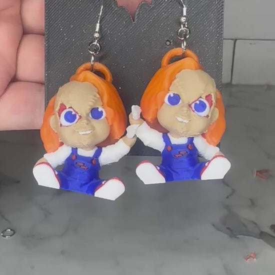 "Add some playful spookiness to your look with our Chucky earrings! These 3d printed earrings are lightweight, making them comfortable for everyday wear. Embrace your inner horror fan with these quirky and unique earrings. (Don't worry, they won't actually come to life! 🤪)"