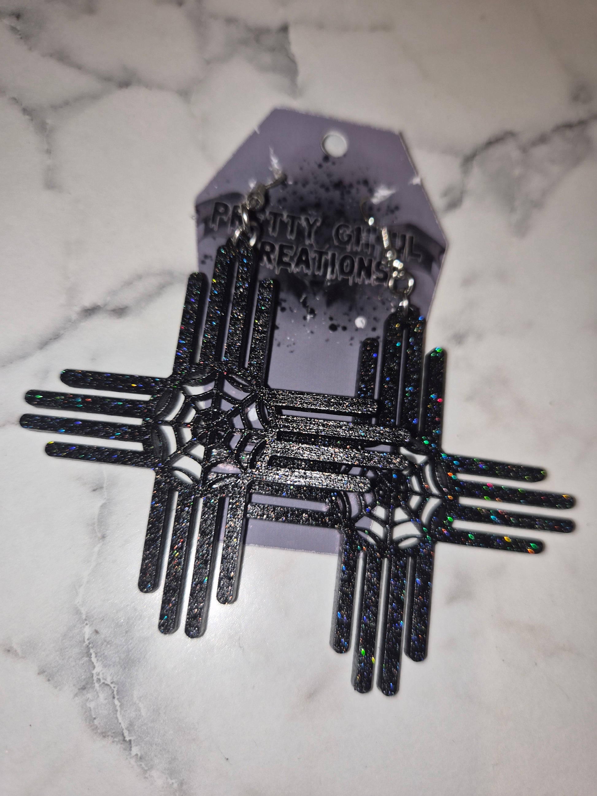 "Add an extra 'spin' to your look with these quirky Spiderweb Zia earrings. Made out of wood and hand-painted, these unique earrings are sure to catch attention. Perfect for those who appreciate handmade, one-of-a-kind pieces. Zia you later boring earrings!"